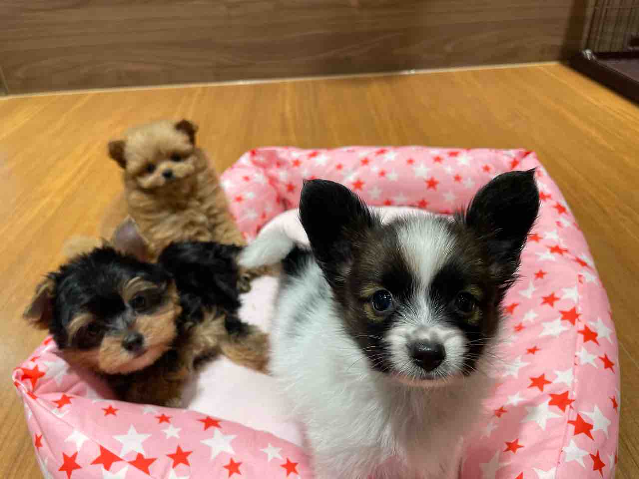 2023年07月31日 新しい子犬達紹介します🐶 ・お問合せ番号 296761・パピヨンの男の子🚹・お誕生日🎂 5月28日生まれ元気いっぱいなパピヨンくんです❤️🔥後ろでは寝ているヨーキーちゃんがいます😴新しく入った子犬たちがベットを占領していますね😅3匹ともカメラ目線をもらいました📸可愛い子犬たちが待ってますので、是非会いに来てください💗ご来店お待ちしております🥰