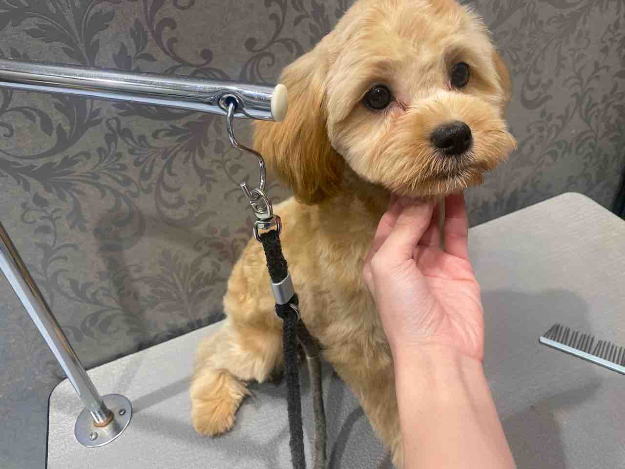 2024年10月24日 子犬ちゃんシャンプーカット⭐️ こんにちは♪今日は、お迎え予定のマルプーちゃんのシャンプーと、お顔カットしましたー😊、とっても甘えん坊さんで、ずっと尻尾フリフリしていましたがしっかり頑張ってくれました💕お目目クリクリで可愛いです❤️これからの成長が楽しみです😊