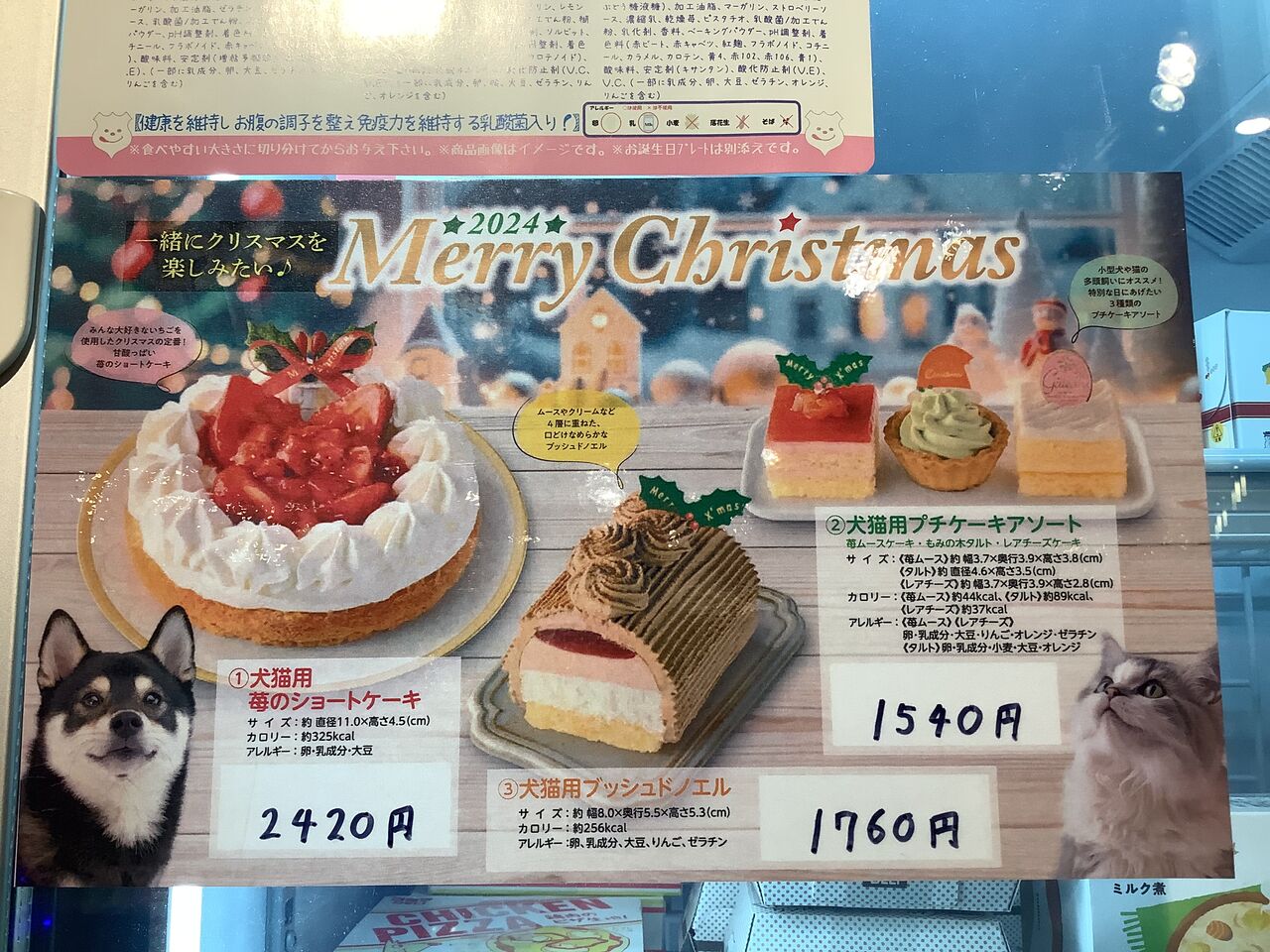 2024年12月23日 クリスマスケーキご用意してます🎀 明日はクリスマスイブ🎀当店では、ワンちゃんの、ネコちゃんのクリスマスケーキご用意しております🎂残りわずかになっておりますのでお急ぎくださいヾ(´ω`=´ω`)ノ可愛いワンちゃんネコちゃんも沢山在籍しております🐶🐱ゆめタウン博多にご来店された際はお立ち寄りの程よろしくお願い致します😊