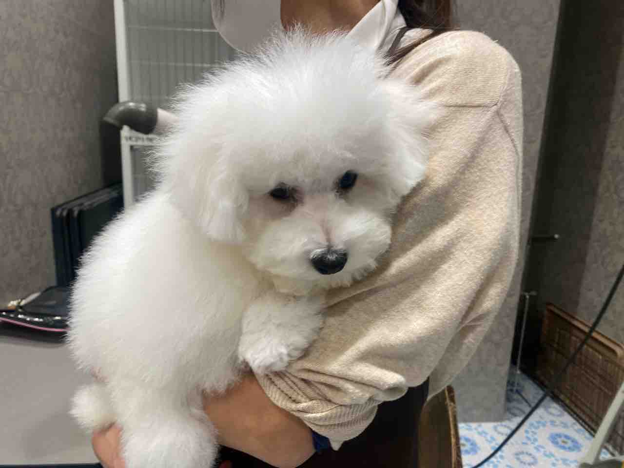 2024年12月19日 子犬ちゃんシャンプー こんにちは😃お店の子犬ちゃんのシャンプーをしたのでご紹介します!ビションフリーゼ 女の子問い合わせ番号328611ふわふわモコモコになりました✨真っ白でとっても可愛いお顔してます🥰是非会いに来てください✨✨✨